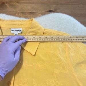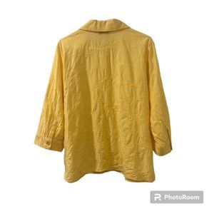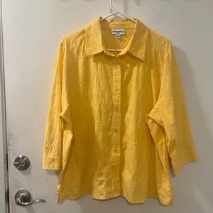 Breckenridge Woman Yellow Floral Embroidered 3/4 Sleeves Button Down Top Size 2x