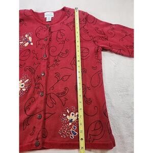 Breckenridge Woman's Sweater With Butterflies Embroidered- Size M Red