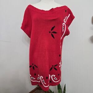 red knit tunic, cottagecore dress, boho sweater dress, vintage knit top, floral tunic, cotton knit dress, cozy knit top, women’s red sweater dress, 100% cotton tunic, fall outfit aesthetic, Cottagecore, Vintage Knit, Boho Chic, Cozy Aesthetic, Soft Girl