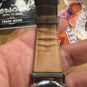 Elegant Breda women's watch featuring a sleek silver case and a sophisticated gray strap. Perfect for any occasion.