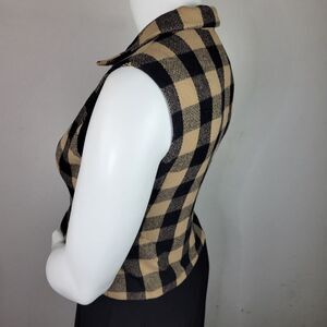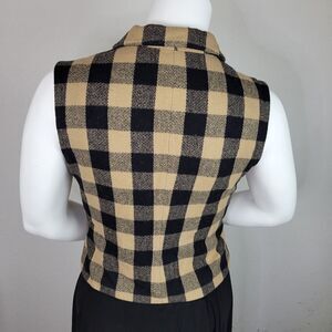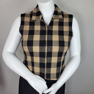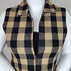 Breeches Wool Buffalo Plaid Black And Tan Zip Front Collared Vest Size M