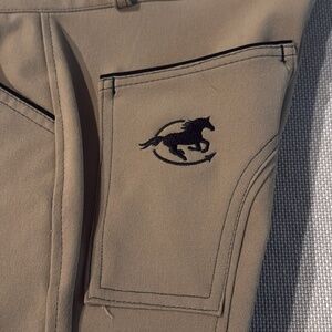 New condition! Size 32! Tan with black piping and sock bottoms. Really nice breeches, tried on but never ridden in.