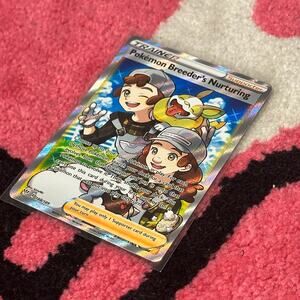 Authentic Breeder's Nurturing #188 from the Pokémon Darkness Ablaze expansion. Features the full holographic Trainer artwork of a classic Pokémon Breeder, perfect for competitive play or collection. Condition is as pictured; please review photos for edges and surface. A great addition for Sun & Moon era Trainer collectors.