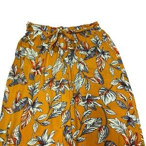 Breeze Ever Women's Pull On Wide Leg Pants in Size Large. Elastic waistband with a belt, with wide Palazzo Legs. Floral print on a mustard yellow background. 100% Rayon. New with Tags. Great Condition.
