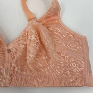 Breezies Wire Free Bra Size 38DDD Peach Mesh Lace Overlay Comfort Unpadded