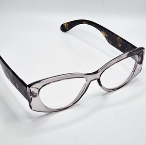 These stylish reading glasses showcase a harmonious blend of silver with brown hues, crafted with a sleek rectangular design. The frames are made from high-quality materials, ensuring durability and a polished finish.