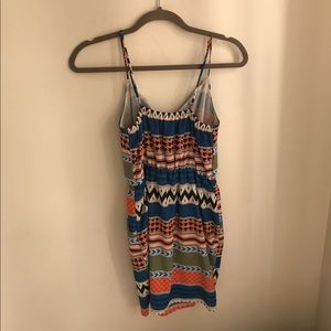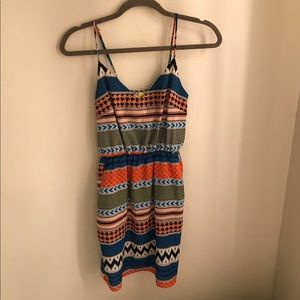 Spaghetti strap summer patterned dress great for day to day or summer gatherings with a Jean jacket.