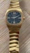 Description: Gorgeous Swarovski crystal embellishments on bezel. Beautiful black rectangular dial with gold-tone hands and markers. Date window. Gold-tone weave stainless steel bracelet with hidden push-button clasp. Just cleaned and serviced with a new battery installed. Works well!