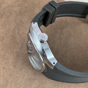 Vintage Breil TRIBE unisex Wrist Watch Quartz date All Stainless Steel TW0472 Curved Mineral Crystal 10 inch Gray Silicone Strap 5ATM Water Resistant 1.625 Diameter Case, Luminous Hands. Very Good condition see photos Light scuffs to Rounded Lens New Battery Serviced