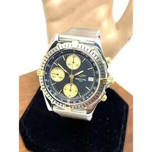 Breitling Men's Watch B13047 Swiss Automatic Vintage Chronograph Black Dial 18K Yellow Gold