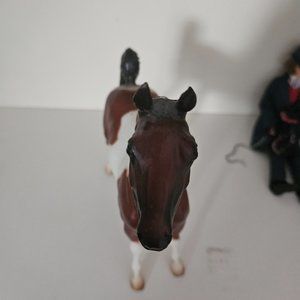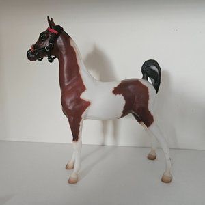 Rare Breyer special run set bay pinto paint American saddlebred weanling with original black and red halter included. Brenda's legs not attached to torso but included. Brenda in saddleseat blue attire with hat. Leadline has had clip replaced. Horse in excellent condition.