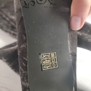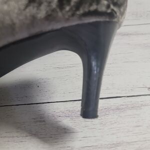 I love these OTK's so much!! Beautiful grey crushed suede with approximately 2" heel. The upper is stretch for easy fit. Features a side zipper.