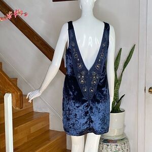 Stand out in this so special mini dress featured in a stunning, textured velvet fabrication with jewel-adorned back feature for added dimension.