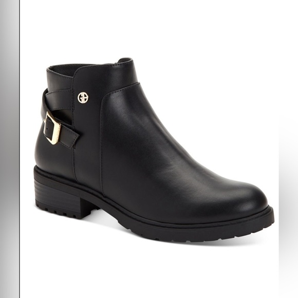 Giani Bernini's Brennin booties dress up or down in classic lines and buckled straps for a timeless addition to any wardrobe. 1-1/4" block heel; 1/4" platform