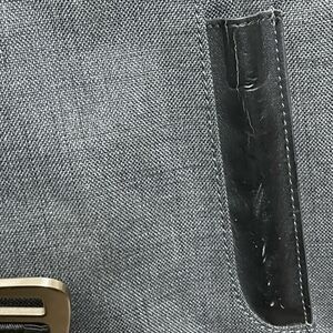 This is a unisex bag. It’s the perfect bag made to hold all of your computer and tablet essentials. Comes with multiple convenient pockets for your computer, tablet, mouse and/or pen. Cute little compass attached. The fabric of this bag is in great condition (except for a small spot on the bag), but the black faux leather areas are a bit worn (also shown in photos). The crossbody strap is adjustable, and although it does have some blemishes it is still a great bag with a lot of life left in it.