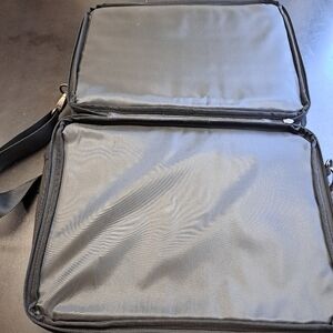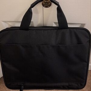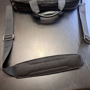 in excellent condition, store & protect laptops up to 15.4" in a padded compartment, organizer panel for accessories, quick access magnetic iPad pocket, front zipper accessory pocket, a second compartment with space for your documents, magazines & other gear, an organizer panel inside second compartment with a 3x slip in pockets & 2x pen pockets & 2x large mesh pockets on opposite wall to keep things in order, front zippered pocket for assorted accessories, 2x padded magnetic dual carry straps on top, removeable, adjustable shoulder strap, which connects to the brief with swiveling snap hooks, key lanyard with quick release button