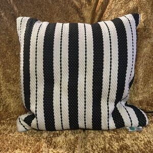 Enhance your living space with this elegant striped black and white throw pillow. Perfect for adding a touch of sophistication to any room.