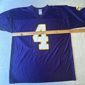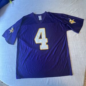 Brett Favre #4 Vikings Football Jersey NFL Team Apparel Onfield Mens Size XL there are a couple small snags in the fabric as seen in photos one small dot paint stain on back of shirt