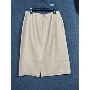Bretton Place Skirt Womens 16 Camel Tan 100% Wool Lined Midi Pencil Made in USA