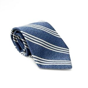 Breuer Men’s Necktie Silk & Cotton Chambray Blue & Cream Triple Striped Tie EUC