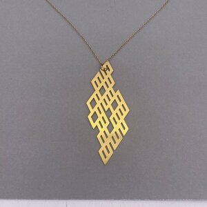 14k Gold Filled Geometric Pendant Round Link Chain Grid Necklace