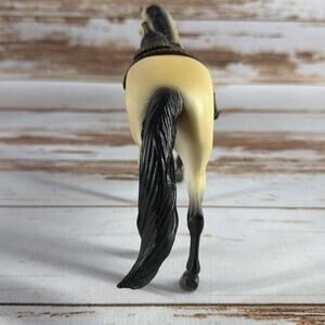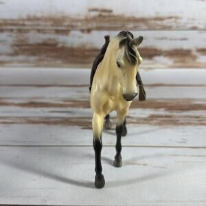 Breyer 1993 Limited Edition Fugir Cacador Lusitano Stallion, model #870, sculpted on the Foundation Stallion mold by Chris Hess. Released exclusively through JC Penney as part of their holiday catalog. This buckskin stallion features black points, dorsal stripe, and a matte finish.