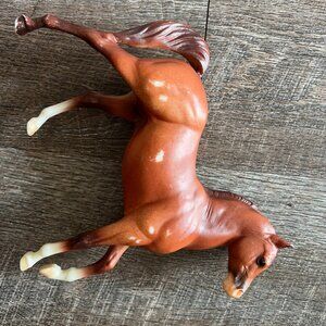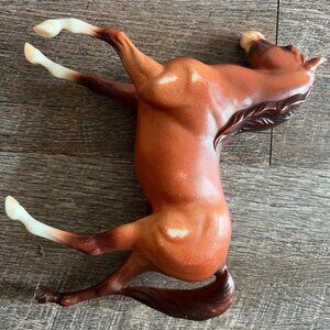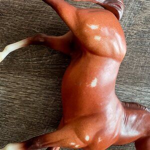 This Breyer is a red roan arabian stallion model. This is used and does have marks/scuffs. Please note the missing paint.