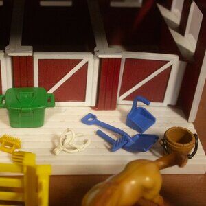 Original set also include a water trough that is not included. Many of the items seen on the front landing of the stable did not come with the original set but will be included in this offering. Please see images and ask any questions you may have.