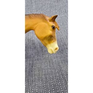 This Traditional-scale beauty features a warm, golden dun coat with subtle shading, dorsal stripe, and expressive facial detailing that bring Sundance’s gentle personality to life. The decorated Native-inspired blanket and feather accents add depth and authenticity, making this model a stunning tribute to Breyer’s iconic Indian Pony mold.