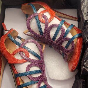 Brian Atwood “B-Tira” Multicolor Snakeskin Sandal