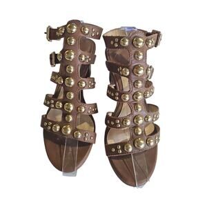 Brian Atwood Blaise Gold Stud Gladiator Sandals Brown Size 7