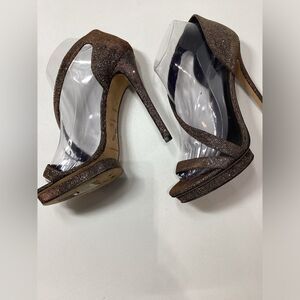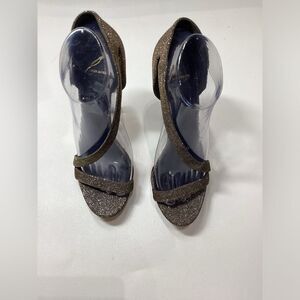 Brian Atwood Consort Iridescent Glitter Stiletto Heel Sandals Bronze Size 9