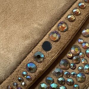 Brian Atwood Francoise Embellished Stiletto Pumps Tan Suede Leather size 8
