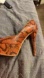 Brian Atwood, new Hills size 7 orange and gray snake skin peep toe even though it’s a stiletto it’s actually a really comfortable and sturdy shoe comes with two extra heel covers for when the others wear down. These are really nice and soft.