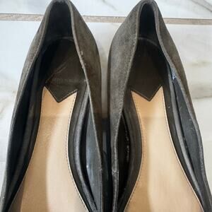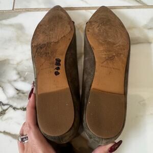 Brian Atwood Pointed Toe Flats Size 7 B-Shini Olive Green Suede Metal Art Tip