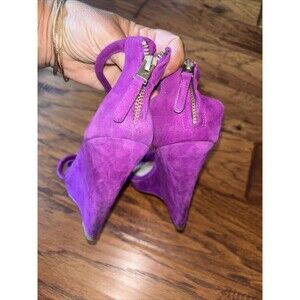 Brian Atwood Priscilla Purple Wedge Heels Leather 7.5 Straps Zip Peep Toe