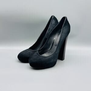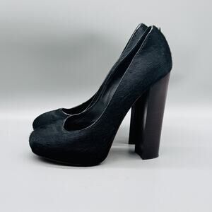 Brian Atwood Shoes Womens 9.5 Black Block Heel Round Toe Pony Hair Italy