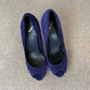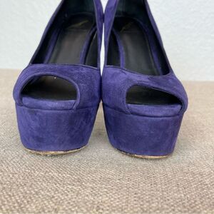 Brian Atwood Suede Peep Toe Platform Pumps in Royal Indigo size 7 1/2