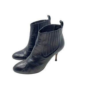 Brian Atwood Vernice Vogue Heeled Booties in Black Leather Size 38.5