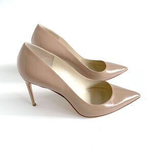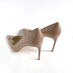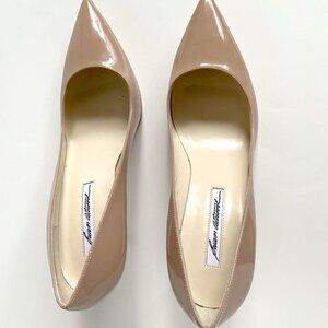 Brian Atwood Women's Beige Patent Leather Pointed Toe Pumps Size: 10/41