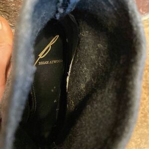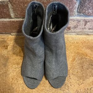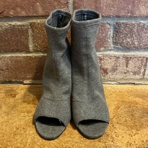 Like new Brian Atwood grey heather stretch knit fabric peep toe heeled booties. EUC, size 8, fabric upper, rubber soles, approximately 4” heels, see pictures for details.