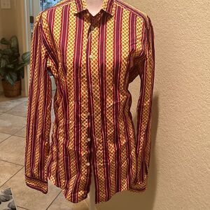 Brian Dales Size 39 M Mod Print Dress Shirt Italian European Bold Statement New