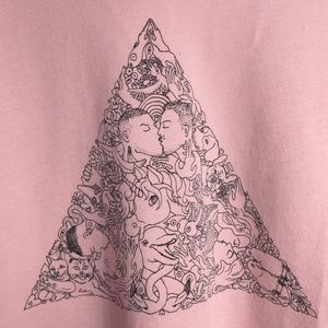 A collaborative t-shirt with Brian Kenny features his love triangle graphic that celebrates love in all its various forms in support of The Trevor Project.