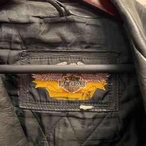 One-of-a-kind tribute to Stray Cat leader Brian Setzer. This motorcycle jacket is a replica of the jacket he wore for the Rolling Stone cover photoshoot. Brand name: "Real Leather Gold", Medium Size, Men's with Stray Cat Logo painted on back.