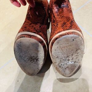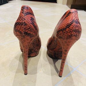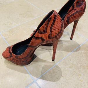 Red and black snake print Brian Atwood open toed platform pump. Worn three times, it’s a super sexy shoe ❤️