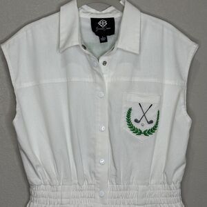 Brianna Cannon Shirt Dress Womens Large White Golf Par-Tee Time Button Front