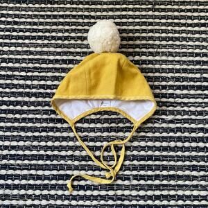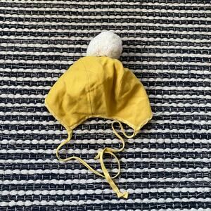 🌿Briar Baby Toddler Mustard Yellow Wool Bonnet Tie Pom Hat 18/24M