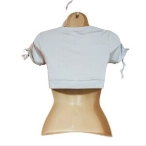 Briavia shirred sleeve cropped top in mint green, size large.