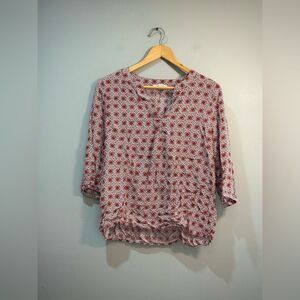 Brick Anne Carson Patterned Blouse Size L EUC