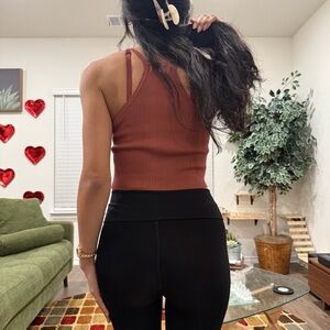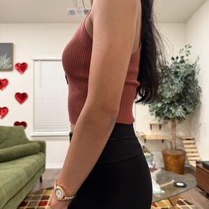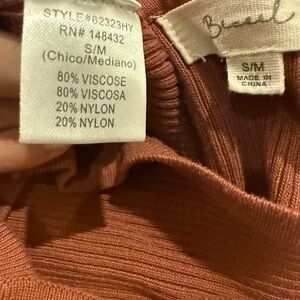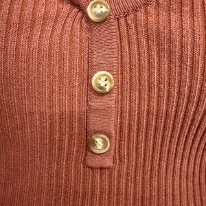 Elevate your basics with this button front halter top from Beceel. Soft, ribbed knit flatters the figure. Perfect for layering or wearing alone for a chic, minimalist look. Excellent used condition.